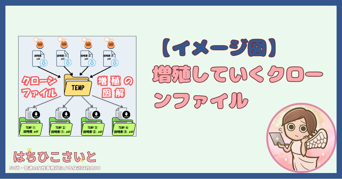 図解ギャラリー 【図解】増殖していくクローンファイル はちひこ 2025年1月29日 / 2025年10月19日 📘 PDFを開く 🔗 記事リンク 保存してないのにファイルが増えてる!?ダウンロード時に自動で溜まる「TEMPフォルダ」のしくみを、”クローン”ファイルと例えて流れを図解しました。